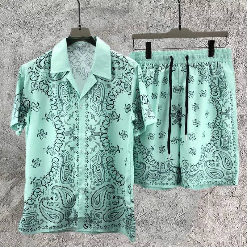Vintage Cashew Flowers Print Short-sleeved Shirt Set